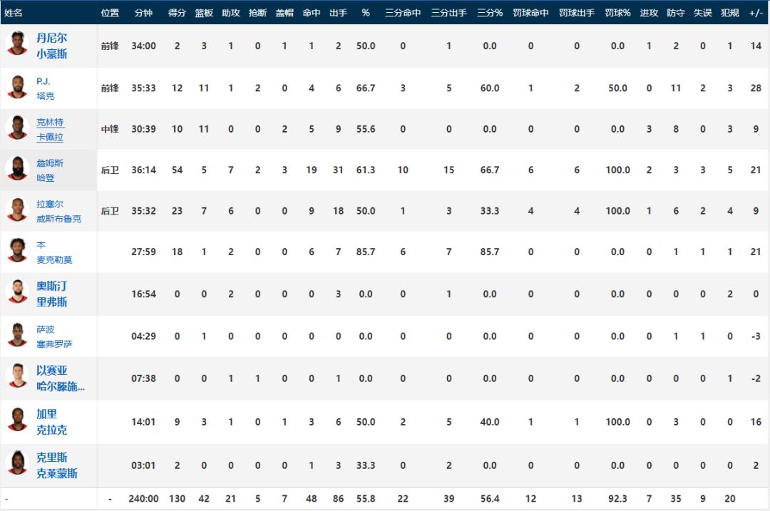 虽然富尼耶的表现毫不逊色,在本节亦有4记三分进账,但仅凭他一人之力根本无法抵消哈登的猛烈输出。