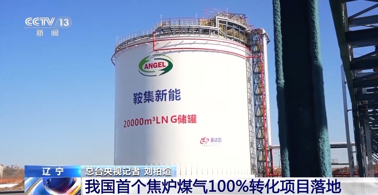 鞍集新能源科技有限公司项目经理 蔡欣博:一种尾气变成三种原料,转化出来的LNG是“最干净的化石能源”,液氨是基石型的化工原料,氢气是最有发展潜力的清洁能源,所以是实现了100%的转化。